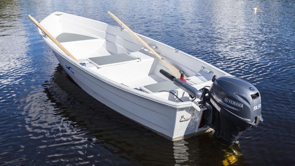 Soutuominaisuudet ovat ennallaan ja vene toimii mukavasti myös airoilla. Kaksi lukittavaa säilytystilaa. Lyhytrikiselle moottorille.