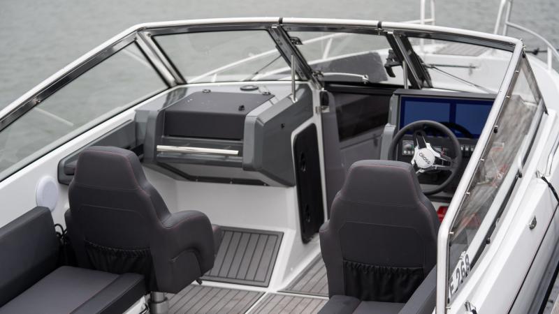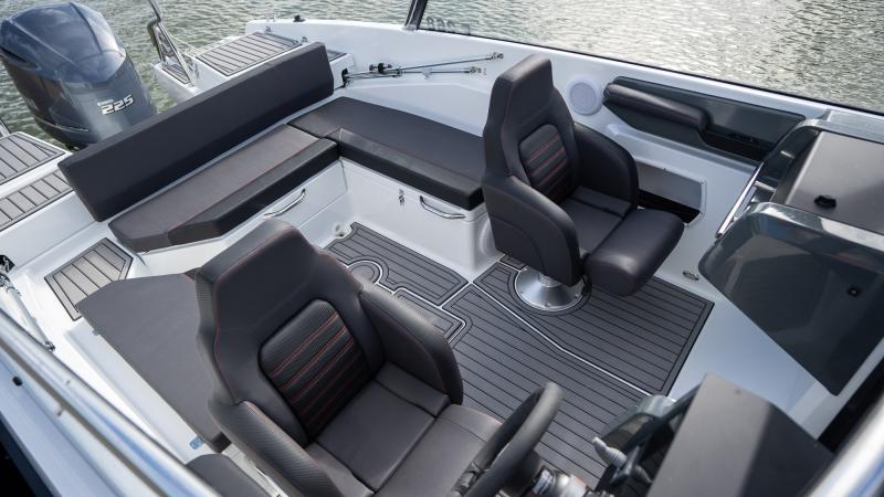 Suunnittelun kärkenä on ollut ennen kaikkea turvallisuus, käytännöllisyys ja mukavuus, varsinkin veneen avotilojen kohdalla. Sekä perästä että keulasta löytyy iso avotila, jossa mahtuu mukavasti viettämään aikaa perheen ja ystävien kesken. Tuulilasin erinomainen muotoilu pitää huolen, että myös takapenkin matkustajat pysyvät suojassa ajoviimalta vauhdikkaammillakin retkillä. Selkeät kulkuväylät sekä isot, tasaiset astinpinnat ja askelmat tekevät liikkumisen, veneeseen nousun ja lastauksen helpoksi ja turvalliseksi. Esimerkiksi isot uimatasot veneen perässä helpottavat rantautumisia ja toimivat erinomaisesti vesiurheilussa.