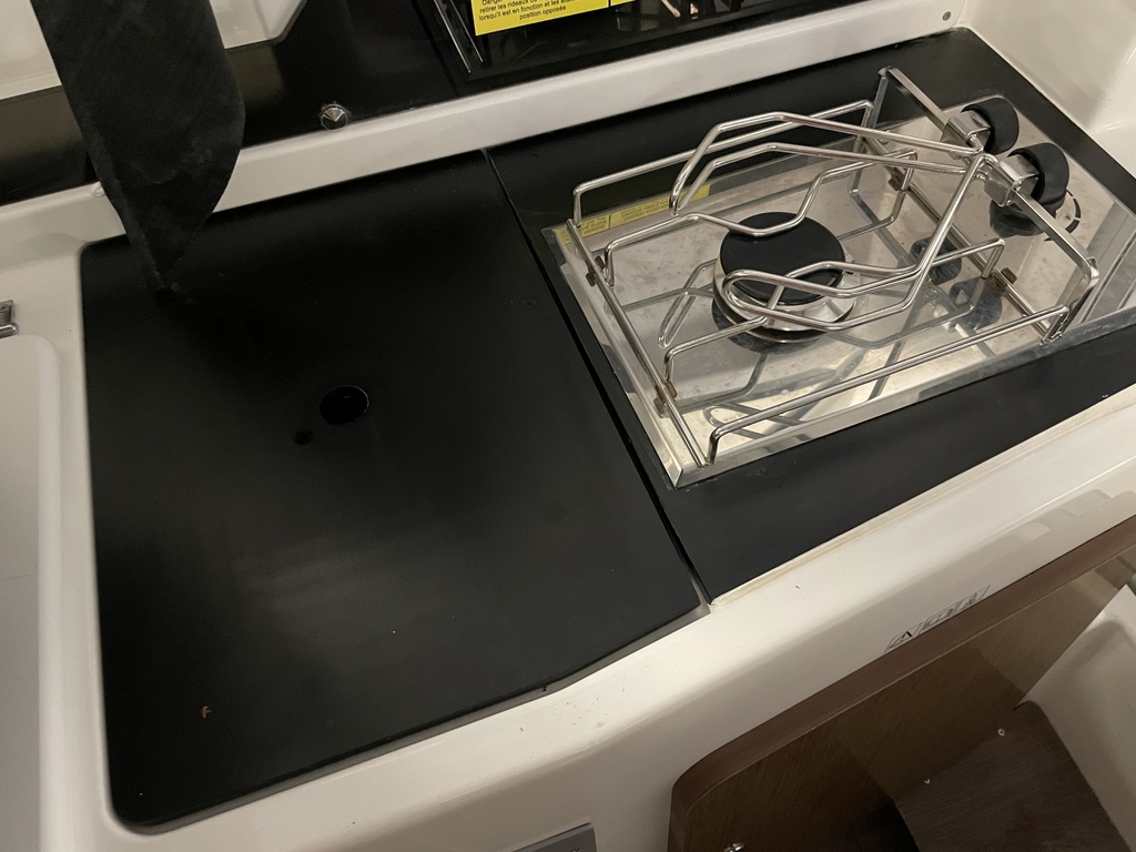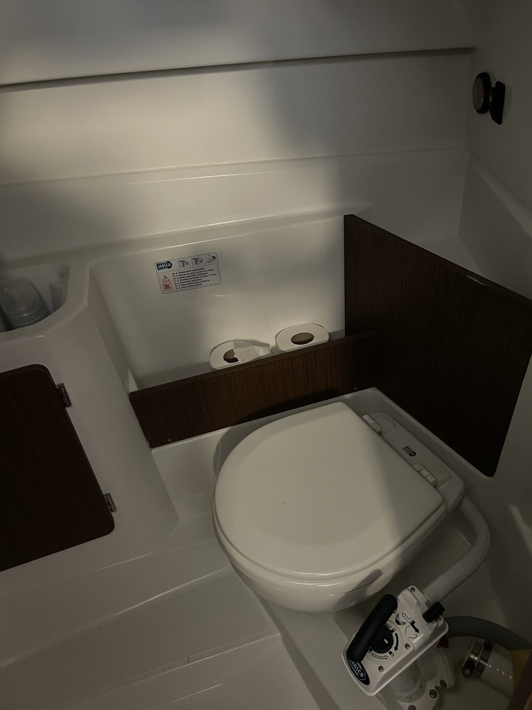 Tässä veneessä on perheen ihan kiva viettää lomaa veneillen, liukuovi myös mahdollistaa alku- ja loppusesongin ns koppiveneilyn kun lämmittimellä saa kajuutan lämpimäksi.
