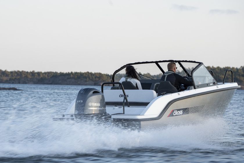 Nya Cross 55 BR:s innovativa lösningar visar vägen för hela Cross modellsortimentets framtid. En modern och stilig look förenas med praktiska detaljer som gör båtlivet smidigt och bekvämt. Cross 55 BR är stabil och känns större än den är tack vare det breda skrovet. Förarens ergonomi har haft en avgörande roll i produktutvecklingen. Resultatet av detta är en alldeles ny sorts konsol, som garanterar bästa möjliga sikt, bekvämlighet och användbarhet. Till den nya Cross-stilen hör svarta karmar, räck och knapar.
